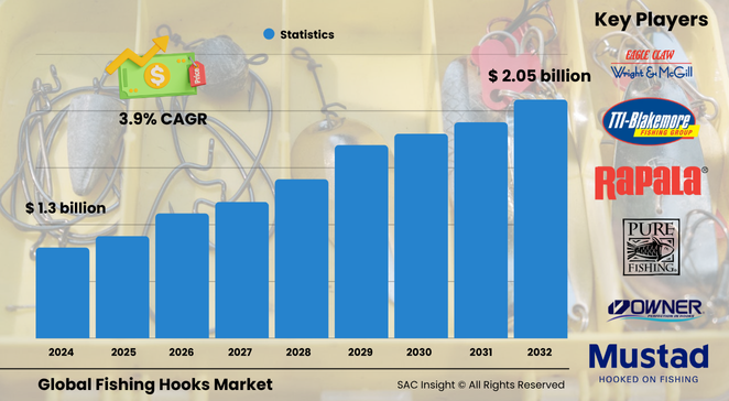 SAC Insight’s deep market evaluation indicates the United States fishing hooks market alone could advance from about US$ 0.50 billion in 2024 to nearly US$ 0.69 billion by 2032 as freshwater outings, bass tournaments, and coastal charters fuel premium hook demand.